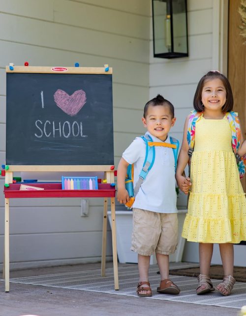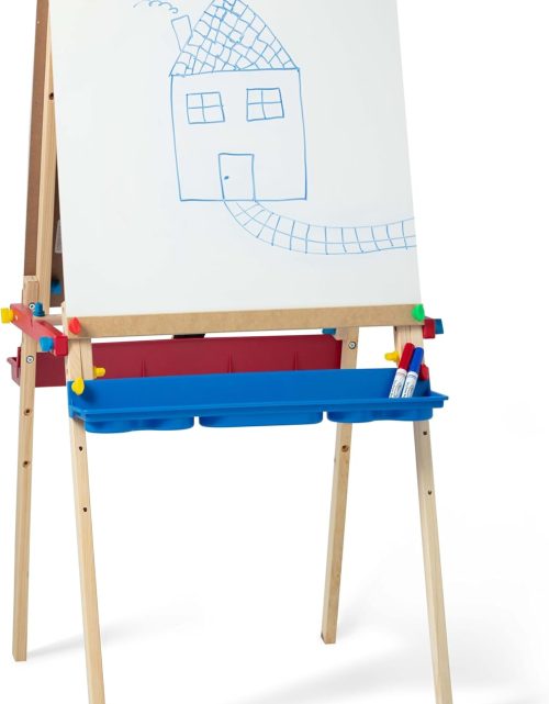 Melissa & Doug Deluxe Standing Art Easel – Dry-Erase Board, Chalkboard, Paper Roller – FSC Certified