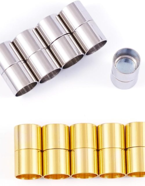 Pandahall 10 Sets Column Brass Jewelry Necklace Clasps Connectors Golden & Silver Plated for DIY Bracelet Necklace Making, Hole: 9mm