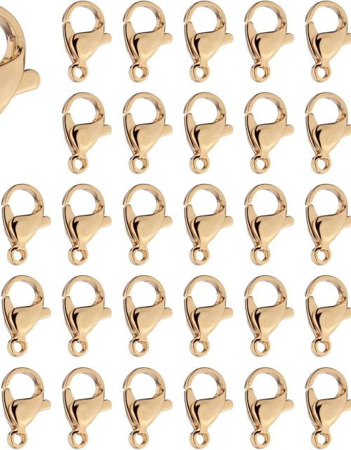 Pandahall 100Pcs 304 Stainless Steel Lobster Claw Clasps Real 18K Gold Plated 12x7x4mm Polishing Jewelry Clasps Connectors for Bracelet Necklace Jewelry Making