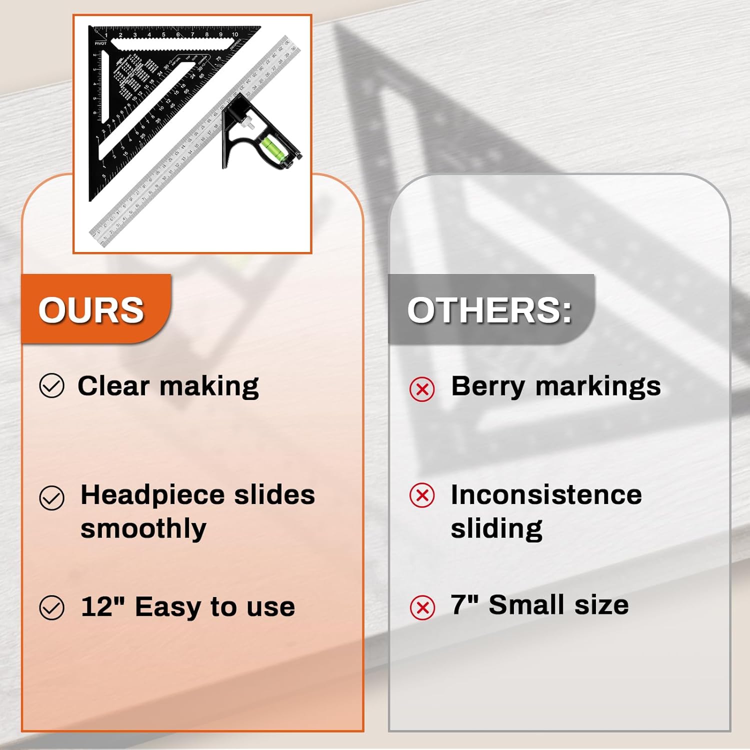Upgrade your woodworking arsenal with the 12″ Advanced Rafter Square and Combination Square Set today and take your projects to the next level!