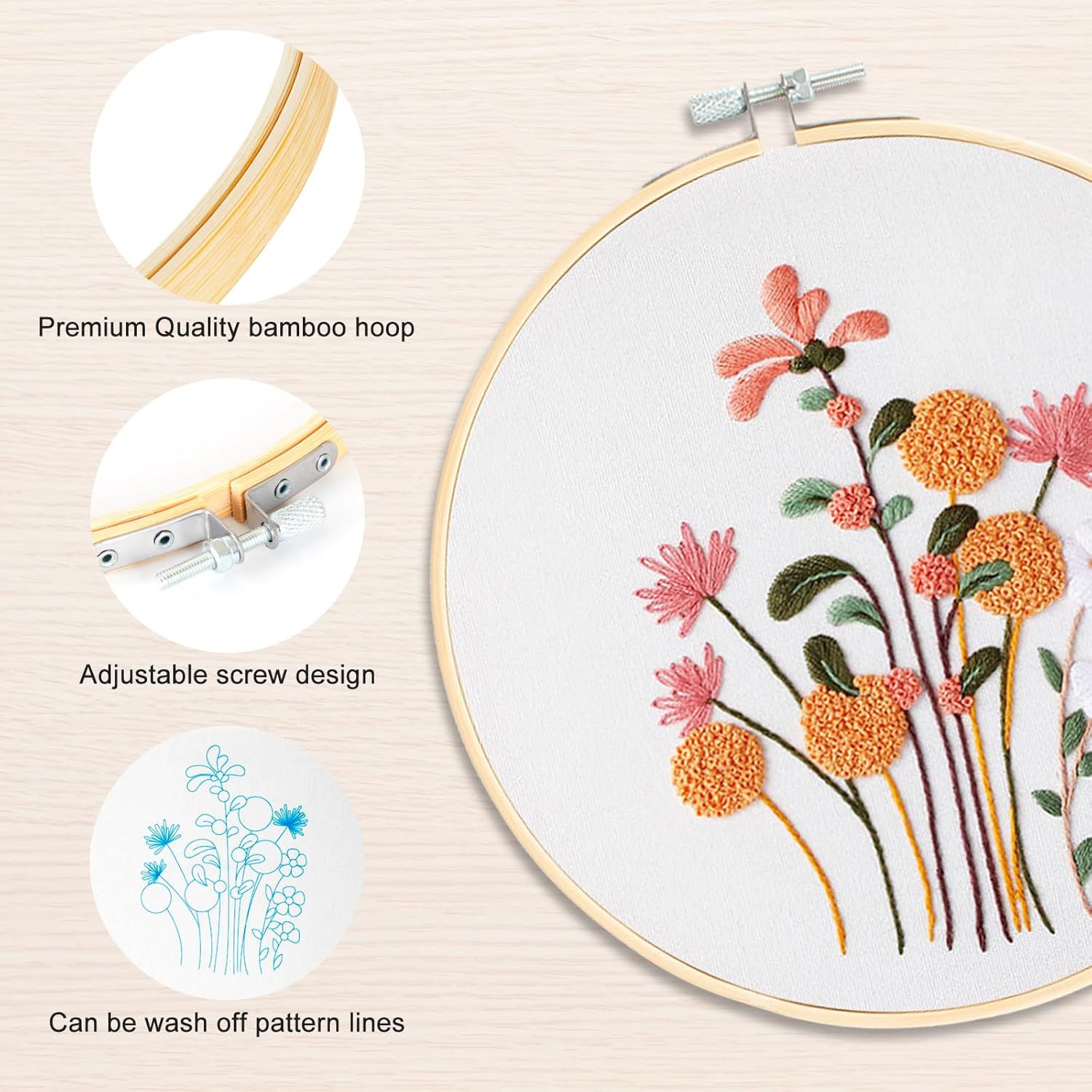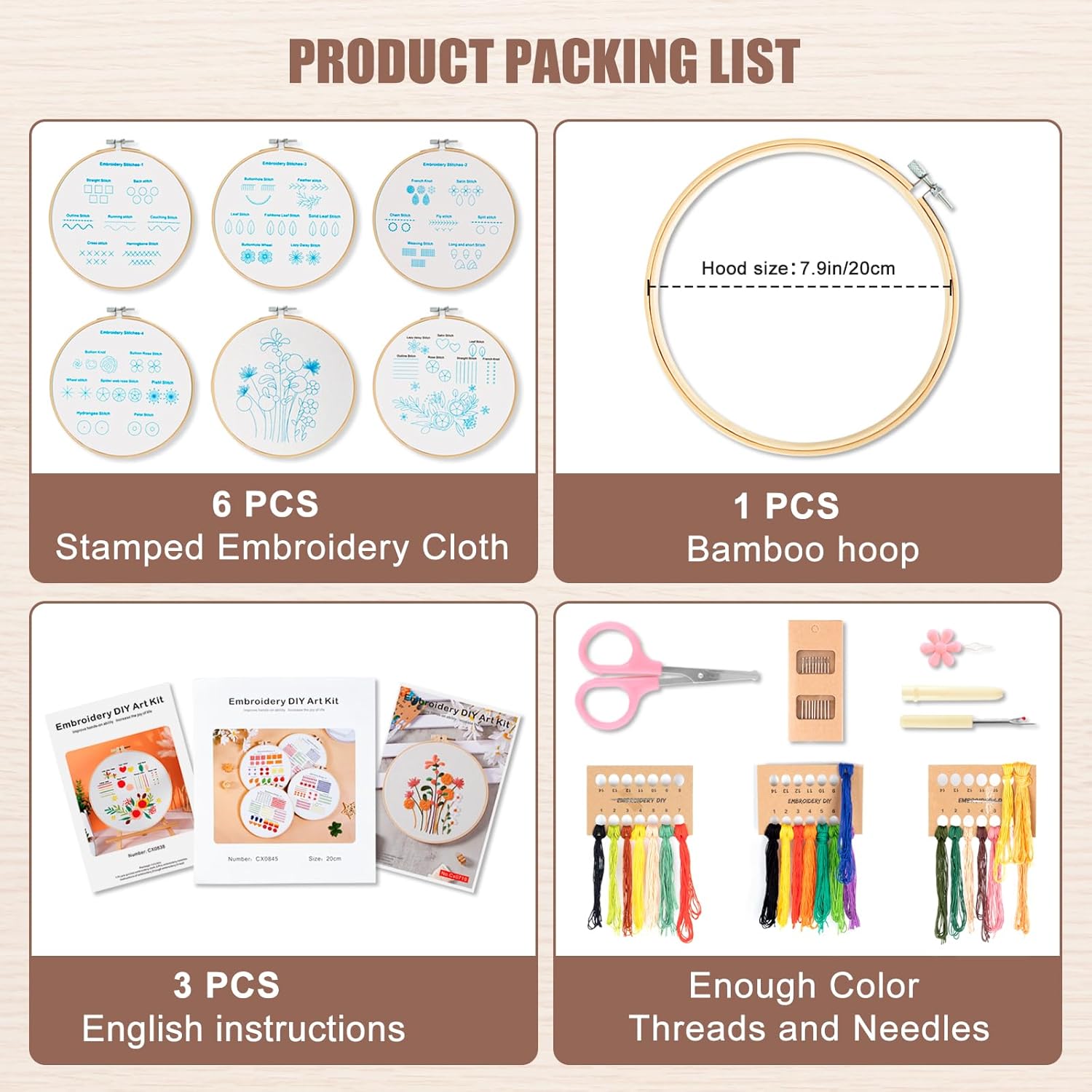 Get ready to bring your ideas to life and create beautiful embroidered masterpieces with our 6 Sets Embroidery Kit for Beginners!