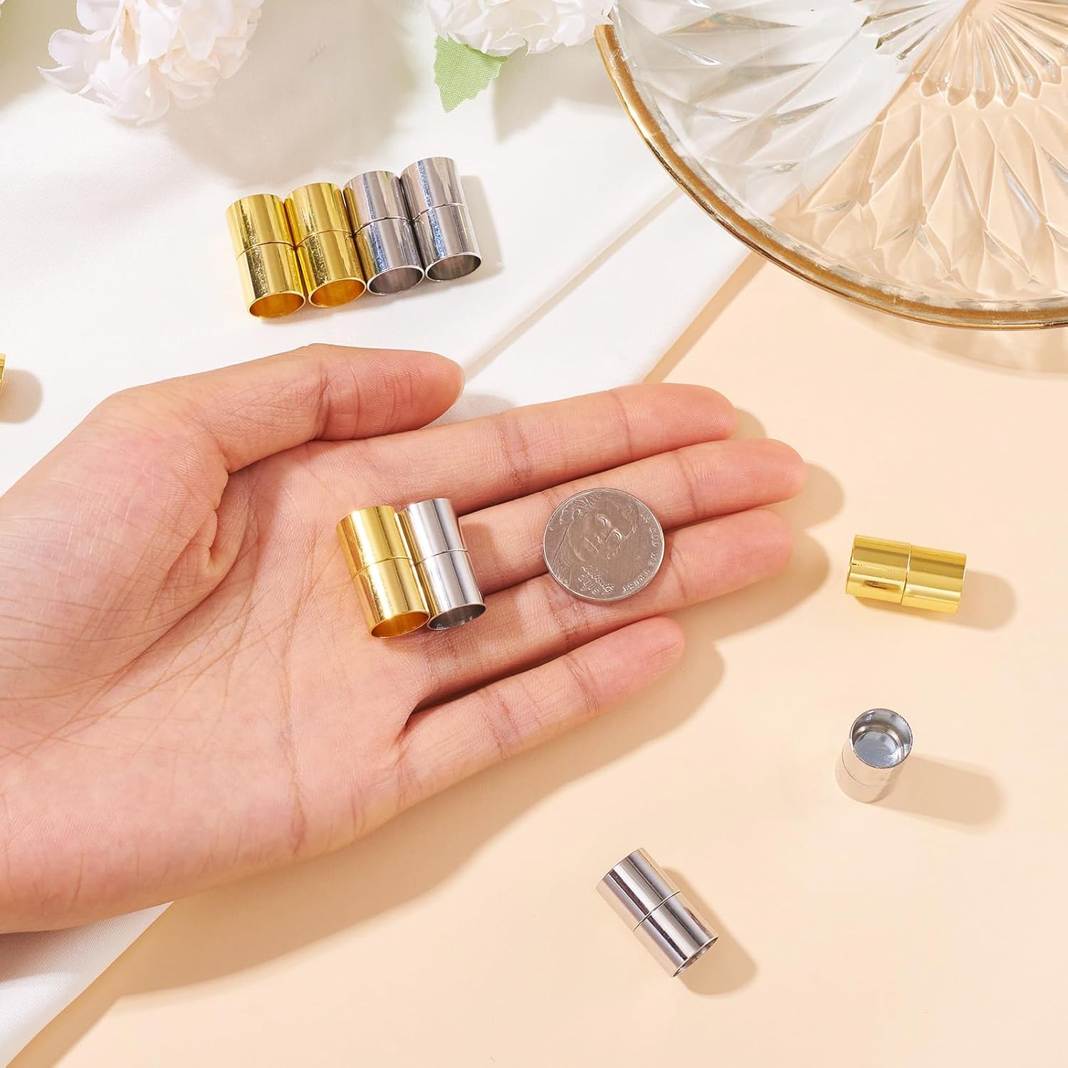 Pandahall 10 Sets Column Brass Jewelry Necklace Clasps Connectors Golden & Silver Plated for DIY Bracelet Necklace Making, Hole: 9mm